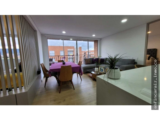 Sala-comedor con amplio balcón y excelente vista, cocina con barra tipo americano, zona de lavandería independiente, 2 alcobas, walk in closet, amplio estudio con opción de convertirlo en tercera habitación, 2 baños y estar de alcobas. Cuenta con parqueadero cubierto, depósito.